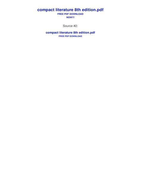 Read Online compact literature 8th edition Doc online is a convenient and frugal way to read compact literature 8th edition you love right from the comfort of your own home. Yes, there sites where you can get Doc "for free" but the ones listed below are clean from viruses and completely legal to use.